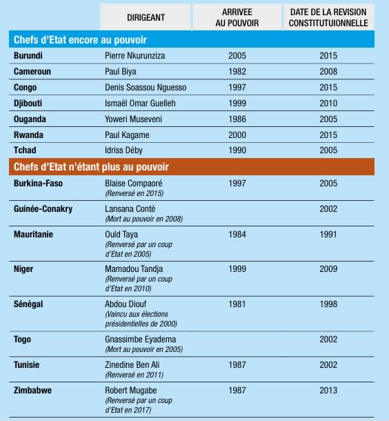 Parfois, ça casse. Patrice Talon est devenu Président du Bénin en avril 2016. Un projet de révision de la Constitution supporté par le Président a été bloqué par le Parlement béninois en avril. Ibrahima Boubacar Keïta est devenu Président du Mali en septembre 2013. Un référendum constitutionnel a été initialement programmé en juillet 2017, mais a été reporté sine die à la suite d’une forte opposition.