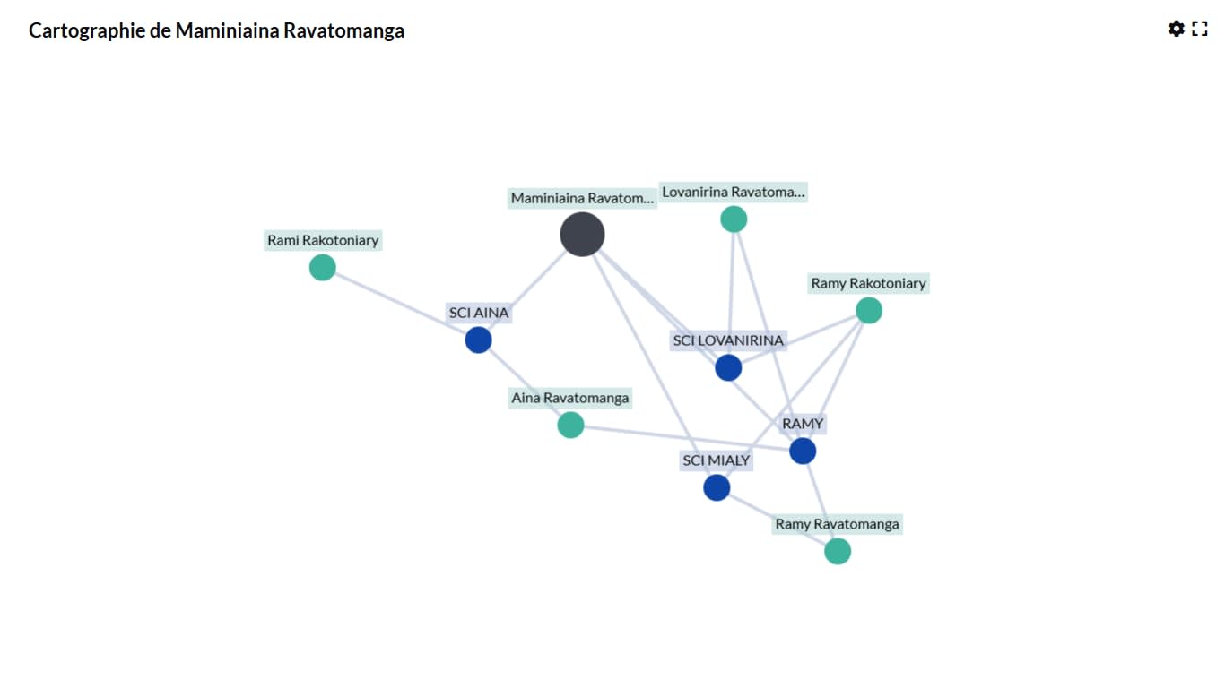 En 2016, Mamy Ravatomanga et son clan est cité dans Panama Papers qui détaille le mécanisme d’évasion fiscale de 214.000 sociétés dans le monde avec les noms de leurs actionnaires. Mamy Ravatomanga y est cité comme l’actionnaire d’une société-écran appelée Essential Time Group Ltd dont le siège est la Villa Ramy, à Mandrosoa-Ivato. En fait c’est plus compliqué que cela car il existe une toile de société-écran assez impressionnante comme le montre ce graphique issu du site de l’ICIJ, le consortium international de journalistes d’investigation, à l’origine de la révélation du Panama Papers.