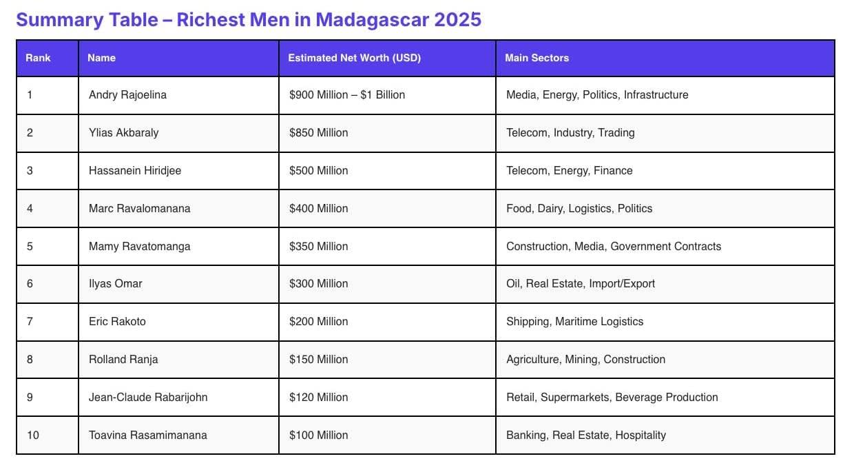 -Médias : l’entreprise SMC Presse S.A., au capital de 50 millions ar, fondé avec l’appui technique de Rolly Mercia, futur ministre de la Communication, et Maka Alphonse, futur président du Comité Fampihavanana Malagasy. SMC Presse publie les quotidiens “Inona ny Vaovao” et “La Vérité” ; Ino Vaovao.Com publie le journal provincial “Ino Vaovao” et l’hebdomadaire “Madagascar Matin”, mais il y a également la télévision M3TV-FM (Majunga) et la station radio Feon’Itasy (Miarinarivo), toutes deux créées en 1999. - Tourisme : Cap Mada Voyages, agence de voyages et tour opérateur réceptif, complémentaire avec les autres sociétés du groupe, notamment les établissements hôteliers Azura, la concession automobile Auto Diffusion qui représente les marques Toyota, Lexus et Foton, mais également la compagnie aérienne Trans Ocean Airways (TOA) pour la location d’avions privés.