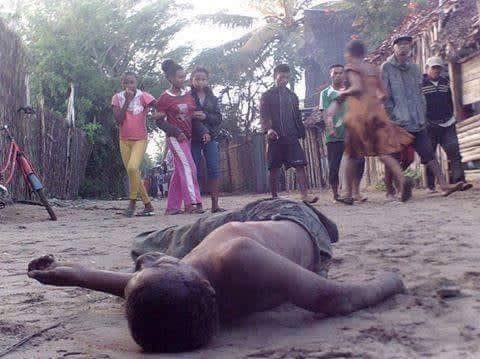 4 février 2026 à Soanindrariny, Antsirabe. Trois hommes, soupçonnés d’avoir tués une femme d’une façon barbare, ont été brûlés vifs avec de l’essence sans aucune forme de procès.